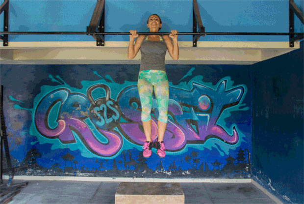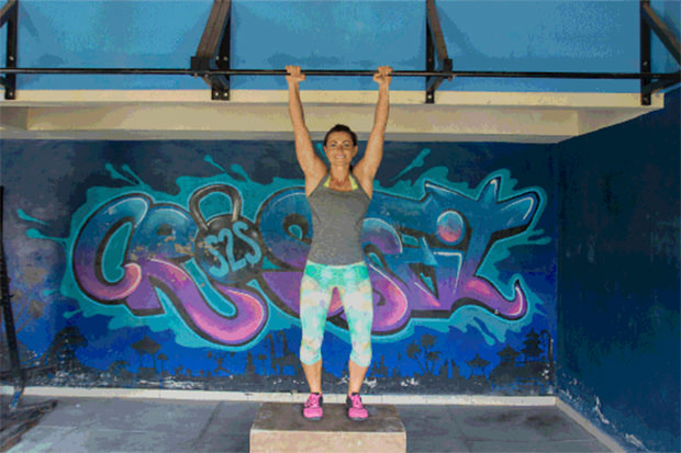 HOW TO DO IT: Step up onto a box or jump up on a pull-up bar so that your chin is above the bar. Engage your core and keep your chin over the bar in the same position. This position is known to make you shake, and that’s OK. Push through it!